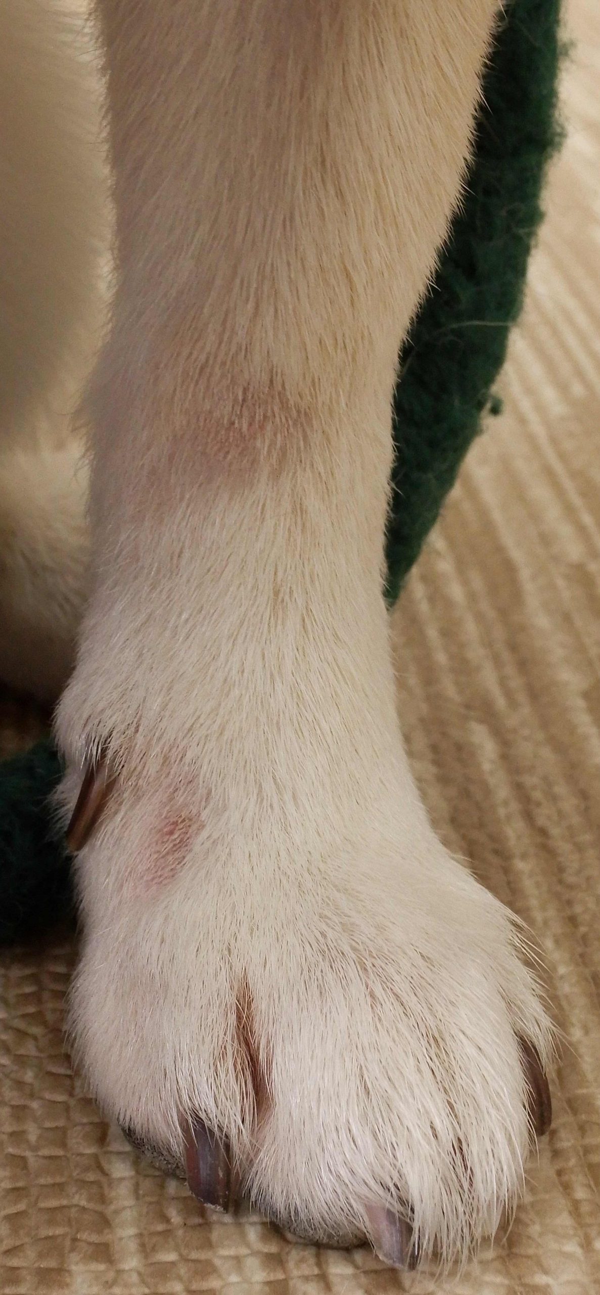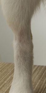 足の写真がどうしても回転できない・・・すいません。手足はすべて「すべすべ(?)」です。もう齧ったりしないので「コーン足」ではありません!ひとまずここまで安定したら安心です。では低用量のアトピーの薬と標準的な心因性の薬の投薬を止めれるでしょうか?もちろん可能かも知れませんが、この子にはお勧めしていません(逆に若い子の初発などは心因性の薬をカットしてみたりしています。ずっと要るとは限らないので!)。一度悪化したら元に戻すのが大変ですし、現在の投薬なら基本的にはずっと使用できる量だからです。この辺はご家族とのご相談ですが・・・。もちろん高用量で維持が必要な場合も、それはそれでリスクとの相談です。