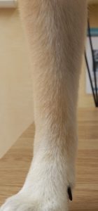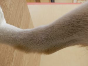 足の写真がどうしても回転できない・・・すいません。手足はすべて「すべすべ(?)」です。もう齧ったりしないので「コーン足」ではありません!ひとまずここまで安定したら安心です。では低用量のアトピーの薬と標準的な心因性の薬の投薬を止めれるでしょうか?もちろん可能かも知れませんが、この子にはお勧めしていません(逆に若い子の初発などは心因性の薬をカットしてみたりしています。ずっと要るとは限らないので!)。一度悪化したら元に戻すのが大変ですし、現在の投薬なら基本的にはずっと使用できる量だからです。この辺はご家族とのご相談ですが・・・。もちろん高用量で維持が必要な場合も、それはそれでリスクとの相談です。