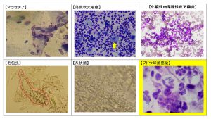 さて典型的である肩から細胞診をしてみます。細胞診をすると例えばこんな感じで鑑別する事ができますので、非常に大切です。
